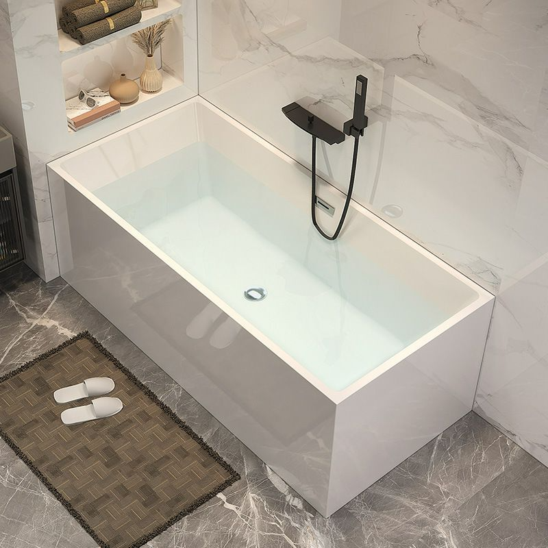 Minimalist Rectangular White Acrylic Back to Wall Soaking Freestanding Bathtub Description